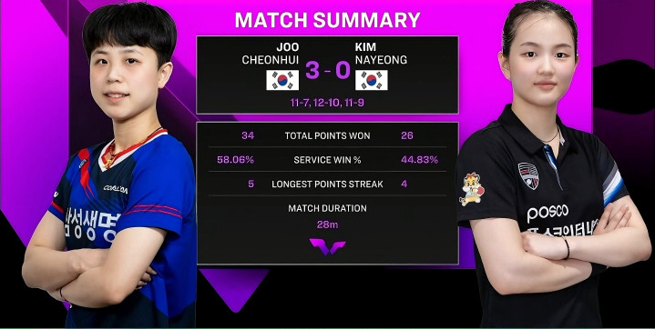 这场韩国女队内战,是洛奥周期两大预订主力的直接对话。从中国身份入籍韩国的朱芊曦,上个月正式确定可以在洛杉矶奥运会中代表韩国队出战,她和金娜英因此而成为争夺二号主力位的直接竞争对手。此战朱芊曦的正手发挥出了压制水准,金娜英徒有摆速衔接紧密的优势,却扛不住朱芊曦的高质量正手,防守体系不断被凿穿,朱芊曦轻松直落三局,顺利拿到一个8强席位。