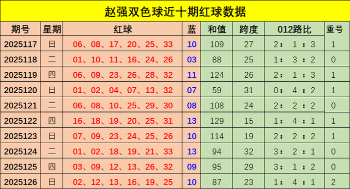 赵强双色球上期分析: