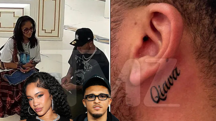 虽然远离赛场,但桑乔在球场外过得非常滋润。他最近与美国说唱女星女友萨维蒂(Saweetie)一起出现在纹身店,将女友原名中的「Quiava」纹在耳朵下方。目击者披露两人在店里热吻,还亲得很热烈。过去,这位女星曾现场观看桑乔在切尔西的比赛,后者专门跑到场边拥抱了她。